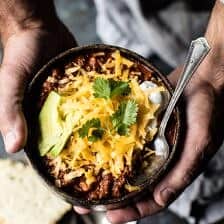 You guys remember how my family and I did a little snowmobiling day last week? While I got this chili started in the morning and when we came home it was ready and waiting. Which was perfect because we were all tired and starving. Below Iโve gathered up a list of my 20 favorite winter crockpot recipes. Some are a little indulgent, while others are on the very healthy side. For those of you planning your healthy come back after New Years, donโt worry, tomorrowโs post is all about the healthy eats!
