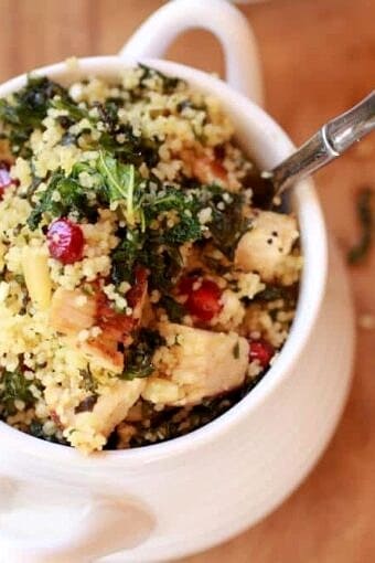 Save RecipeMain CourseJanuary 24, 2013Crispy Kale Salad with Coucous, Grilled Chicken and Pomegranates