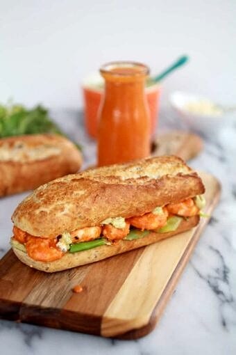 Save RecipeMain CourseApril 11, 2013Grilled Buffalo Shrimp Sandwich with Spicy Avocado Ranch Dressing