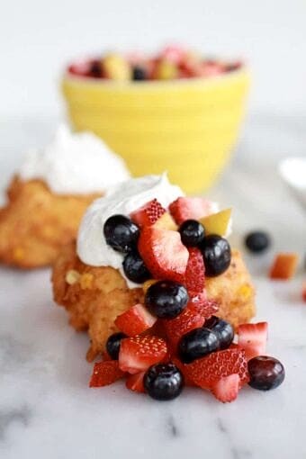 Save RecipeVegetarianMay 21, 2013Corn Fritters with Coconut Whipped Cream and Sweet Honey Bourbon Syrup.