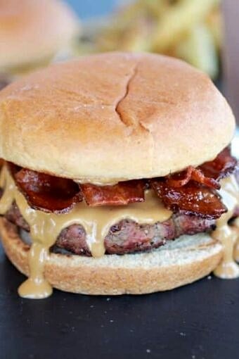 Save RecipeMain CourseMay 22, 2013Peanut Butter Burgers with Slim Jim Fries and Chocolate Malted Milkshake.