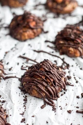 Save RecipeVegetarianJanuary 3, 2014Dark Chocolate Covered Coffee Roasted Almond and Peanut Butter Oatmeal Bites.