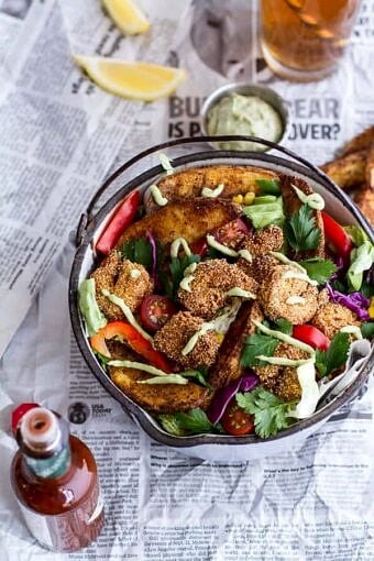 Save RecipeMain CourseMay 19, 2014Sweet Tea Oven-Fried Chicken Sliders w/Jalapeรฑo Cheddar Corn Slaw + Crispy Onions.