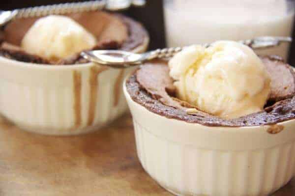 I let the fam have some too, and even heated back up in the microwave (about a minute depending on the strength of your microwave) these are still delicious! These can be prepared ahead of time and baked during dinner. Making the perfect desert for any of your holiday dinner parties. Serve with a scoop of vanilla ice cream for a drool worthy dessert. Your friends and family will be licking their ramekins clean!