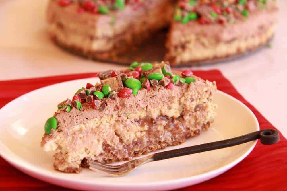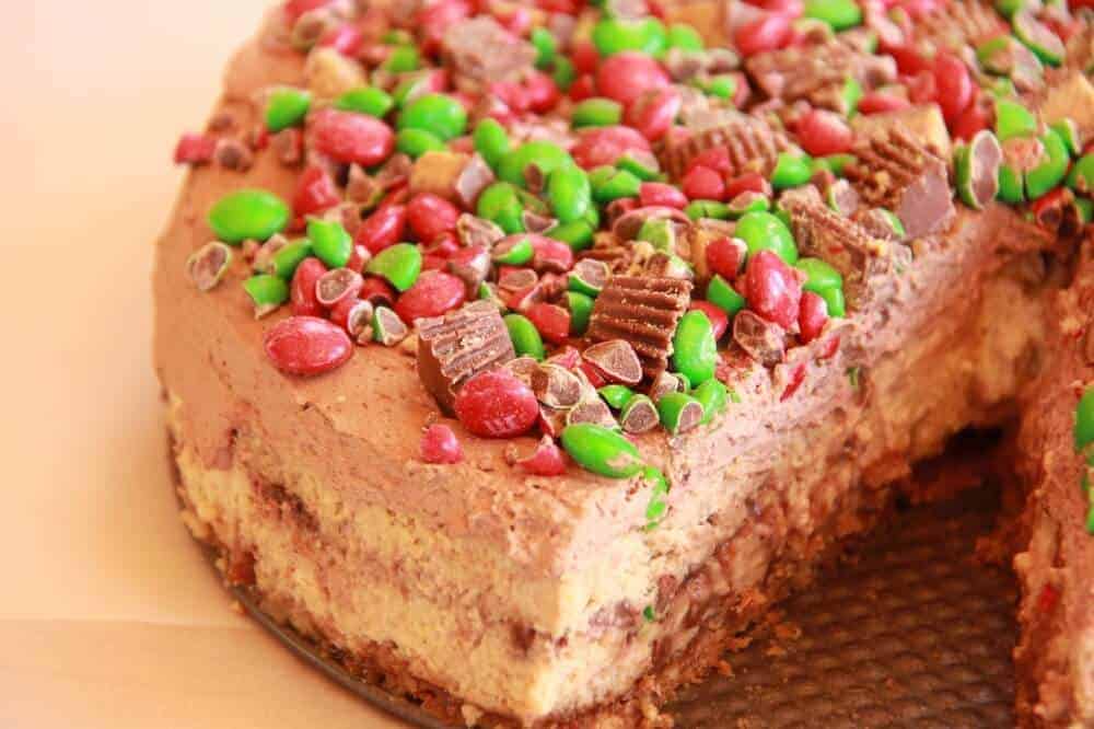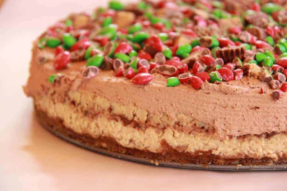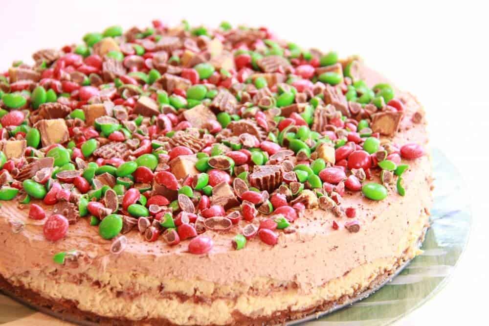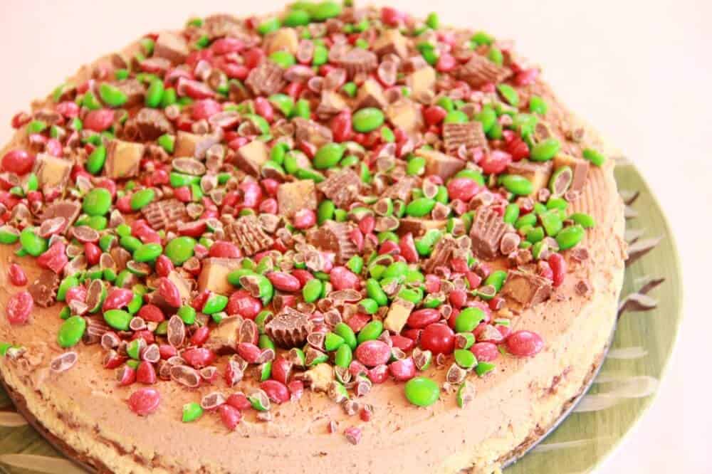 This was the first time I have ever baked a cheesecake…and it turned out great. I couldn’t find chocolate red/green m&ms…used peanut butter red/green instead. This recipe may just become a Christmas tradition now. Thank you!