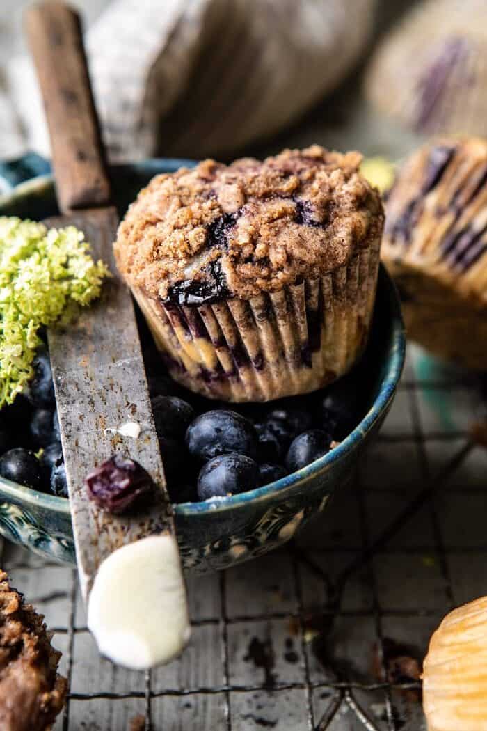 For the longest time now, I have been wanting to share a really good blueberry muffin that tastes “better than the bakery”. When it comes to blueberry muffins, the bakery is pretty hard to beat. They’re big, beautiful, and usually full of so much cinnamon streusel goodness. What’s not to love?