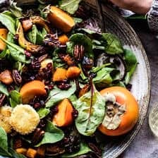 I would eat this first on my Thanksgiving plate! Also, so funny, I’ve been eating persimmons and roasted butternut (topped with burrata) – now I need to fry some goat cheese to throw on top! Such a gorgeous salad – hope your epic Thanksgiving is so delicious!!