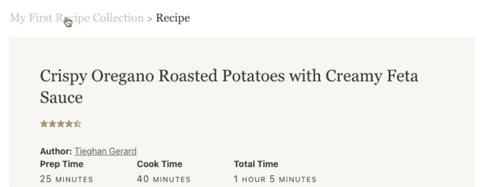 5. After clicking the recipe, youโll be shown the recipe card. You can return to your saved recipes anytime by clicking โMy First Recipe Collectionโ