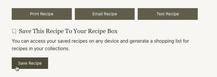 - When browsing any recipe on our site, look for the โAdd to My Recipe Boxโ link at the top of the page or the โSave Recipeโ button on the recipe card.