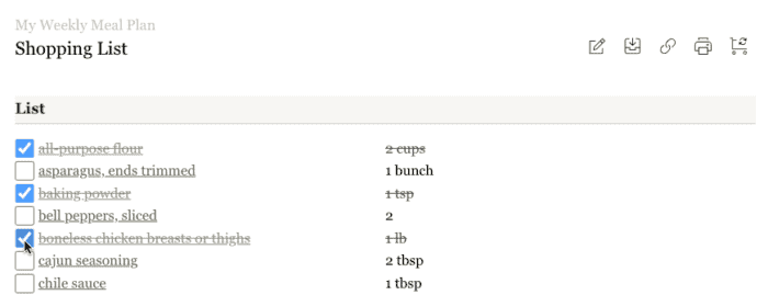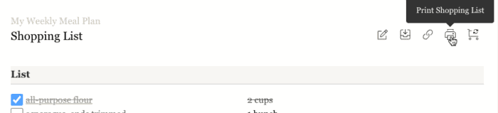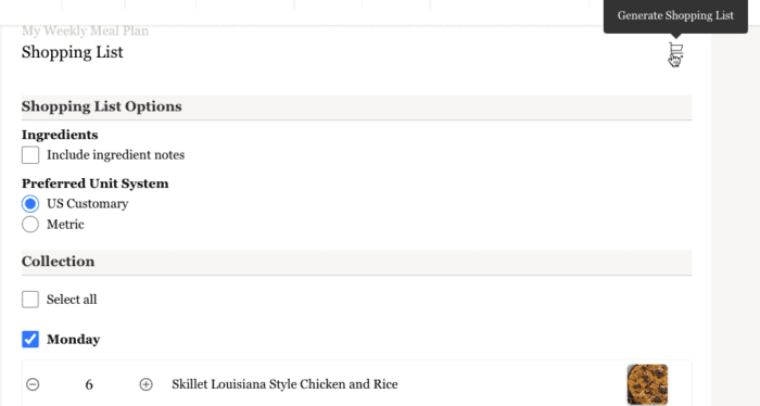 7. Remember, if you update recipes in your collection or meal plan after generating your shopping list, be sure to click โRegenerate Shopping Listโ to pull in those updates.