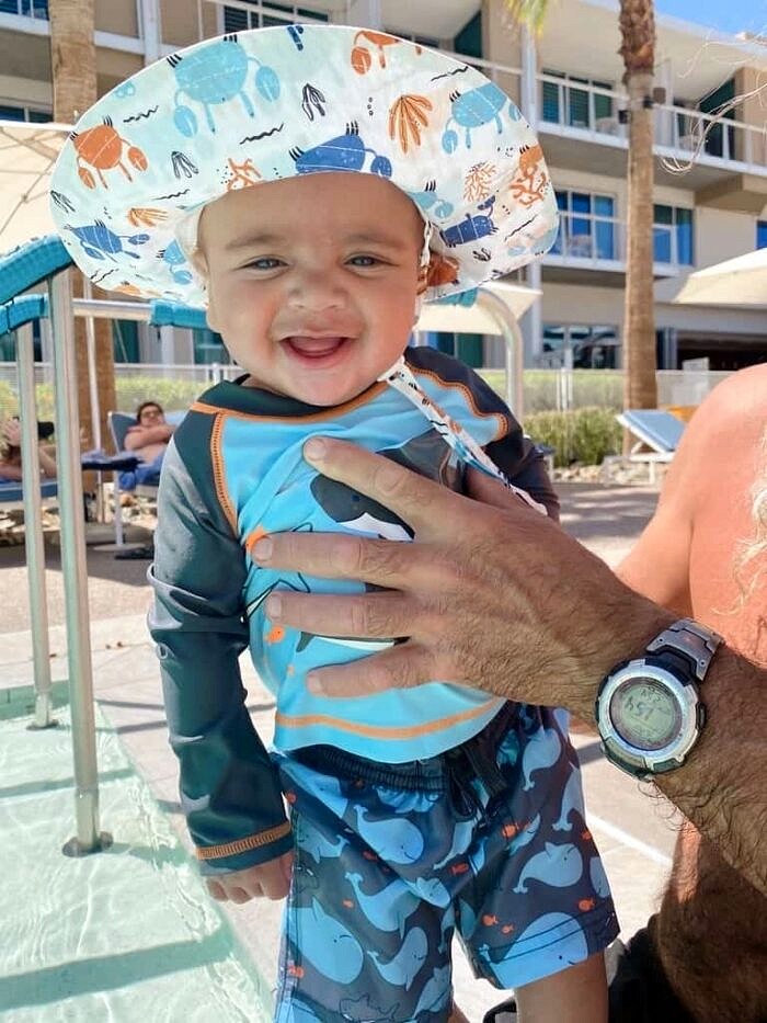 And then Oslo! I feel like you need an update! Heโs pretty great. Living his best life in the desert heat at the moment, playing in the pool, soakinโ up the sun, and hanging with my parents, my oldest brother, Creighton, my cousin Abby, and little miss Asher too. Heโs so easygoing and almost always has a smile on his face. Watching his curious little eyes wander is my personal favorite.