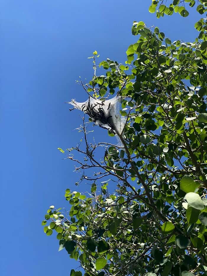 Loved the link for the reading list. Add several to my TBR list (shhh donโt tell my hubby). As for the butterfly nest, they are a moth but the caterpillars (actual name are webworms and we battle them here in central PA all autumn long. Personally they give me the willies.) are highly destructive. Notice the branches with no leaves? Thatโs from them. They will slowly envelop the area and defoliate the upper parts of the tree leaving it open to other pests and fungi infections. Best thing to do is cut the branch from the tree, put it in a trash bag, and put it in the trash can. If you donโt have trash collection then you need to burn the branch (with your red flag warning conditions for your area not the best plan of action I imagine). Whatever you do get it out of the tree and make sure the worms canโt escape and form into moths.