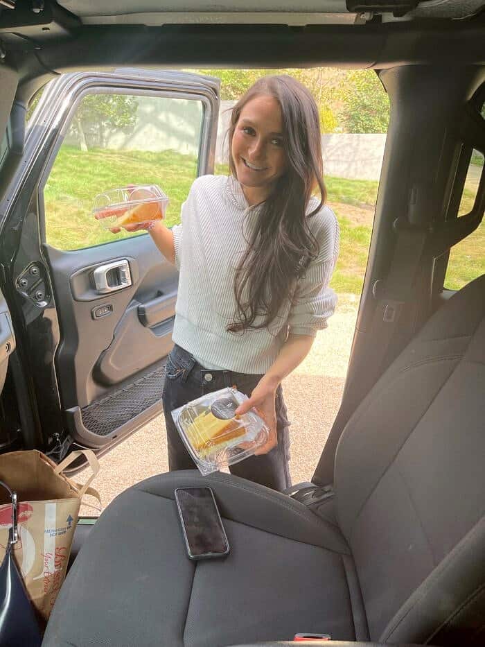 Monday morning I ran around looking for a slice of cake to use for our shoot. I ended up buying two slices of cake in a plastic box, cool whip, and berries. Not what I would normally do, but sometimes you just have to make do, and so we did! Once we had everything for the shoot we headed out to Malibu to Plumcot Farm for our last day of shooting. Plumcot is a super cute spot that I learned about from Camille Styles. Itโs a little oasis in the middle of Malibu, which is obviously so pretty. My personal favorites were the rows and rows of pomegranate trees.
