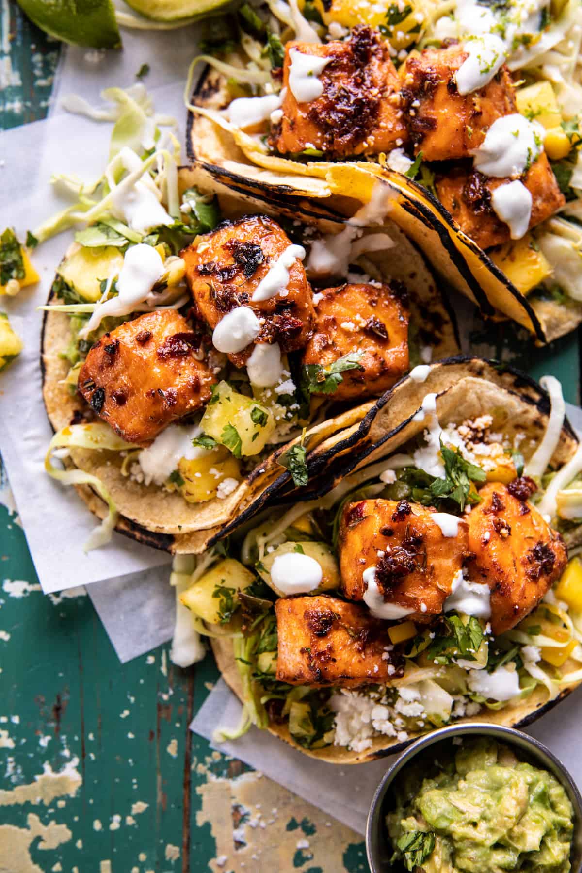 I think poke is Redโs favorite, but he loves a crispy cauliflower taco too. Hails likes almost everything. Sheโs waiting for me to make her a copycat Chick-fil-A chicken sandwich. Oh, and this garlic naan grilled cheese. I donโt know what her favorite is though ?
