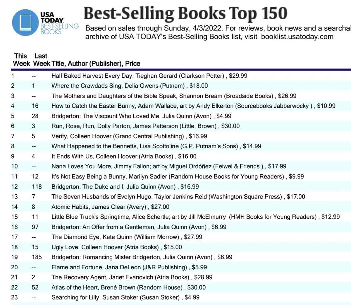 The USA Today list actually combines ALL categories, fiction, nonfiction, cookbooks, all of it. By their measure, HBH Every Day is absolutely THE NUMBER ONE BOOK IN THE COUNTRY.