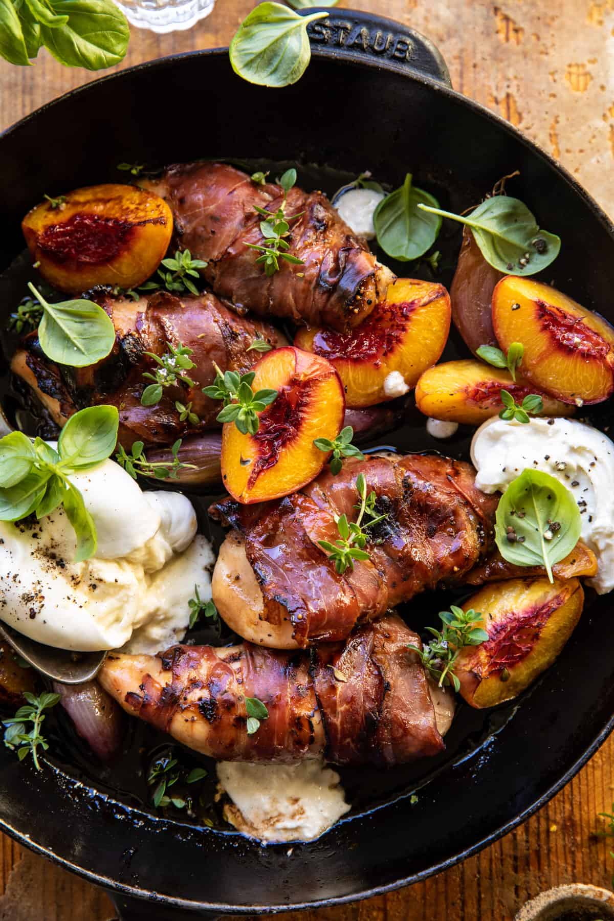 Prosciutto Balsamic Peach Chicken with Burrata and Basil