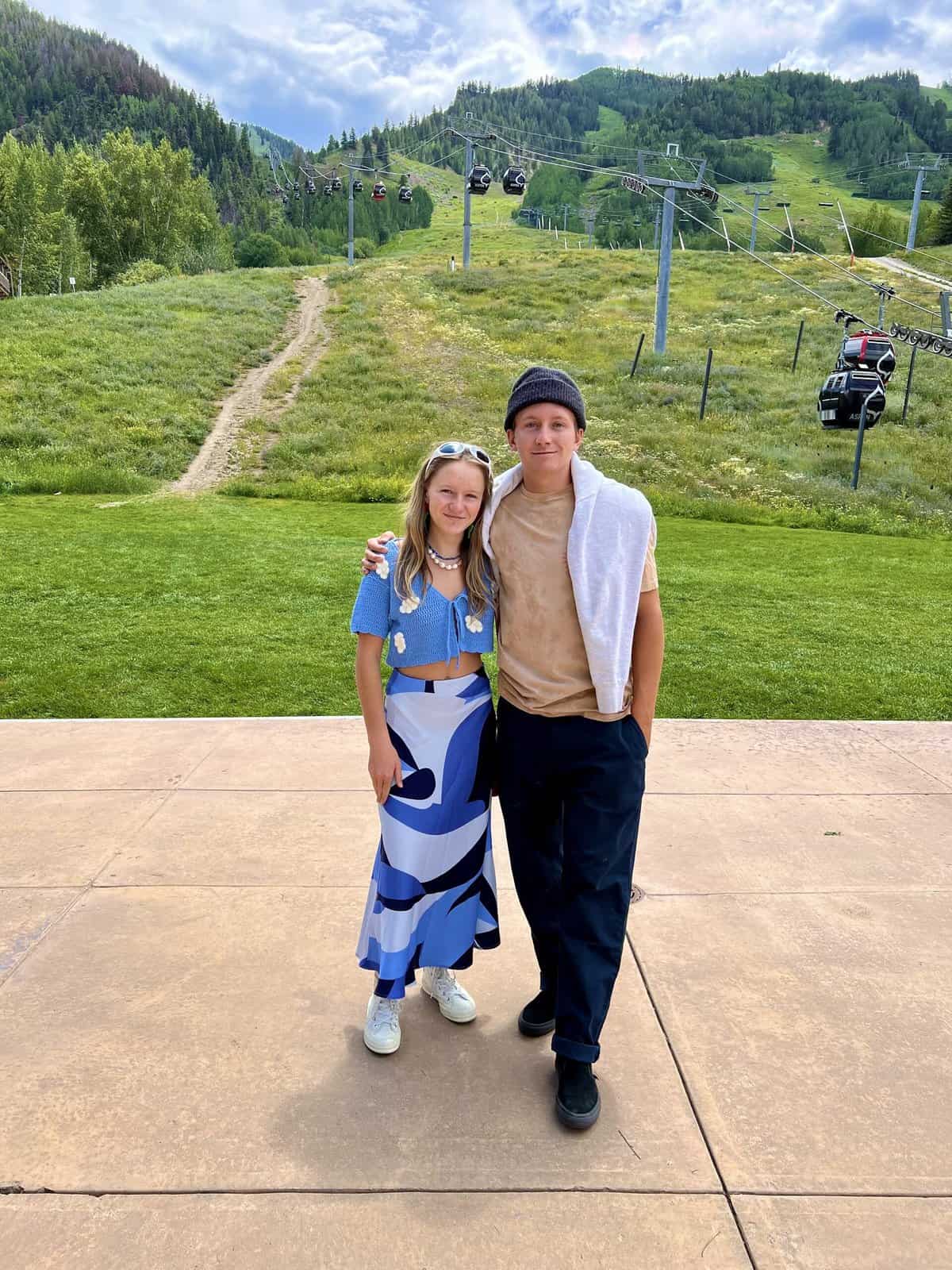 Red and Asher at the bottom of the gondola at The Little Nellย