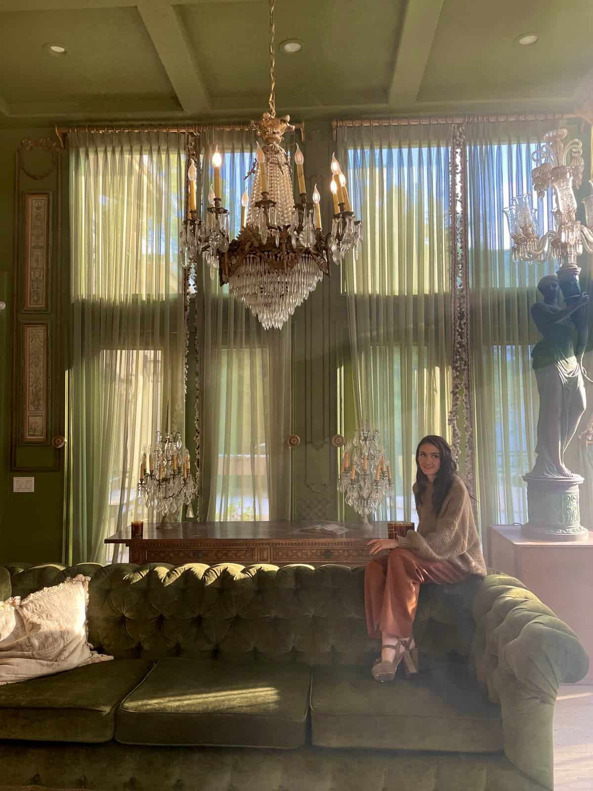 Stunning photo of you on that green velvet sofa. And that house!โฆ