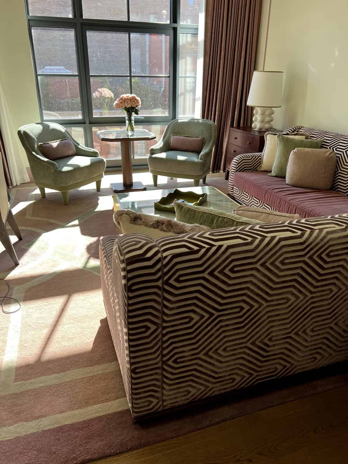 I was so excited. Fouquetโs is more of a boutique-style hotel with a location in Paris thatโs rather famous. The New York location has only been open for a couple of months. It is gorgeous! You feel like youโre in Paris with New York surrounding you. The hotel alone is so chic. Parisian vibes with a touch of New York throughout the hotel (just look at the detailing on the bathroom wallpaper). Itโs a great spot for dinner or drinks!ย