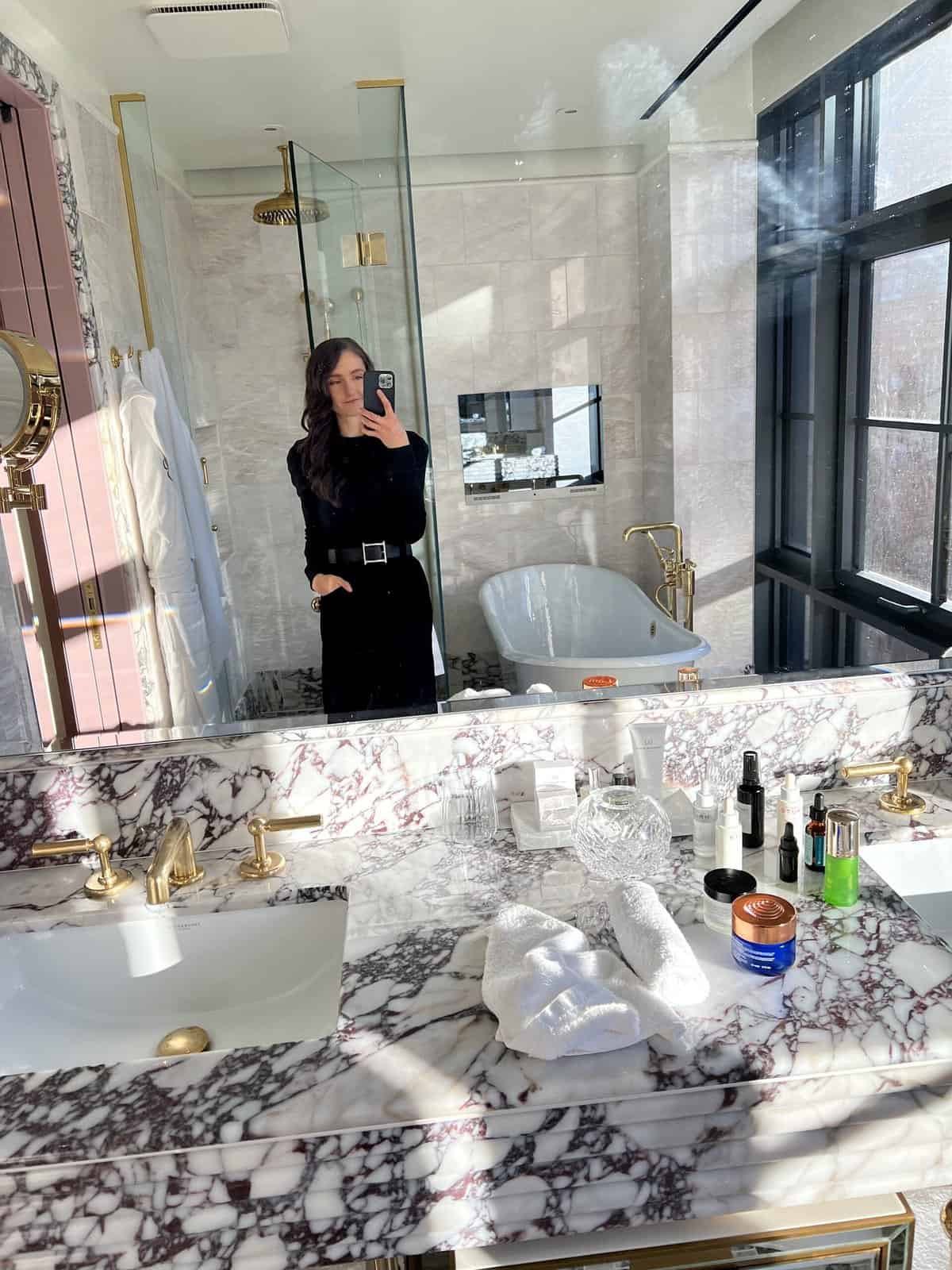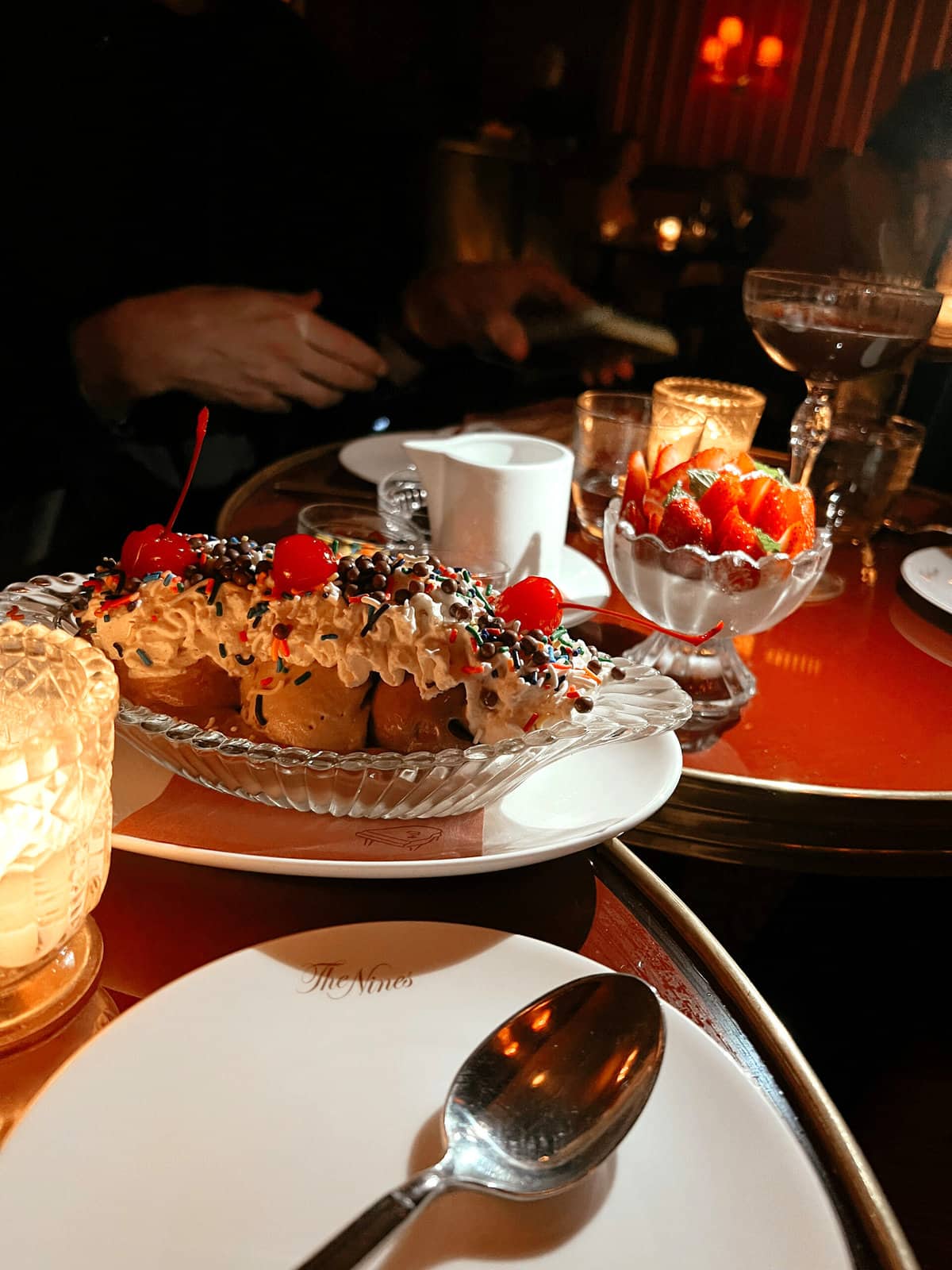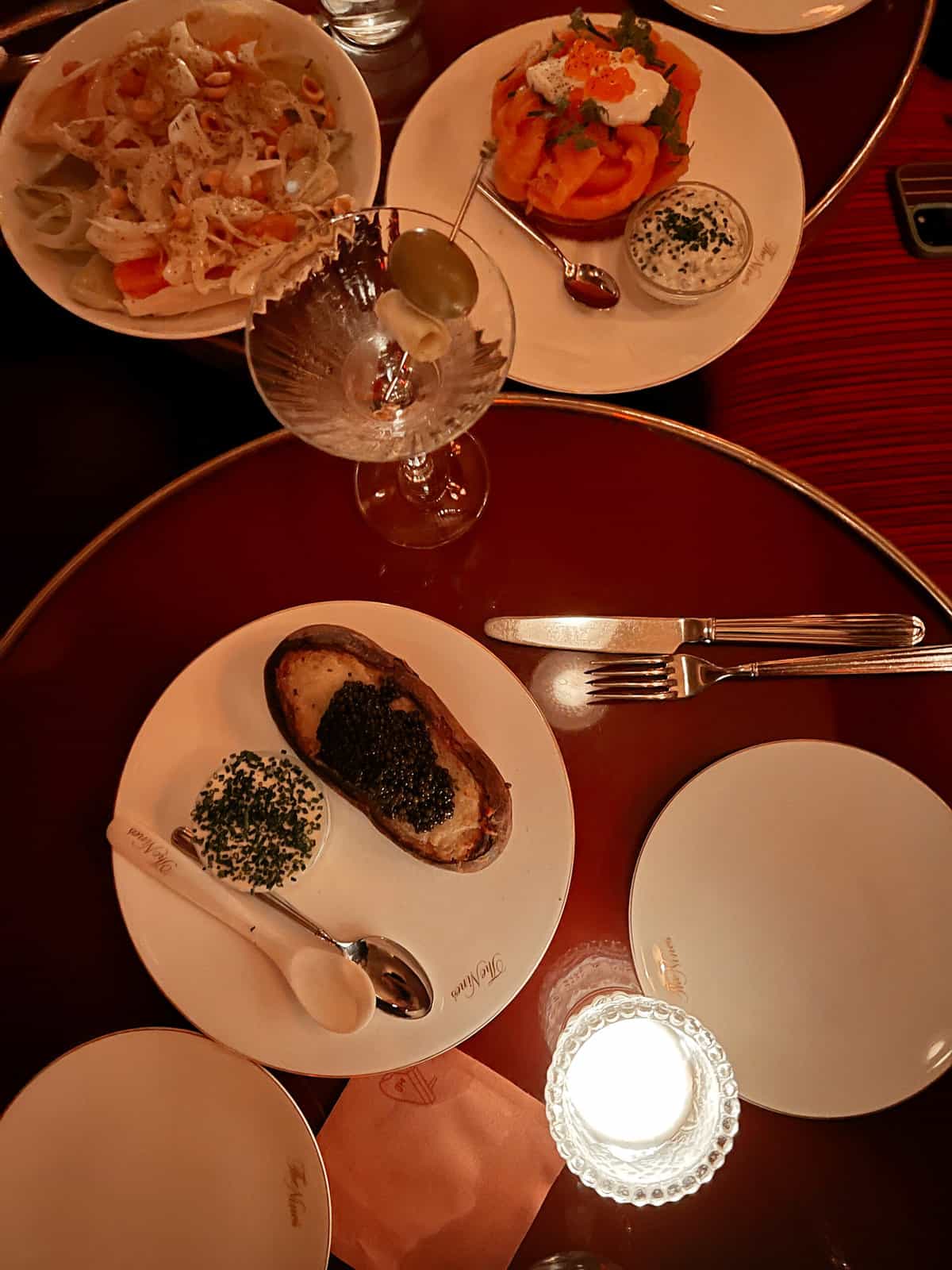 Letโs see, aside from the hotel, I had a fun dinner at The Nines. Iโve been wanting to go here since it opened. Itโs such a special, chic New York spot with a really nice vibe. I think people come for the drinks, but honestly, the food was great too. We ordered so much! Tuna Tartare, Hamachi, Smoked Salmon, Endive, Gnudi (thought this was especially good, itโs handmade pasta with truffles), and then the baked potato with caviar. Oh, and the special was the lobster club, so we got that too!