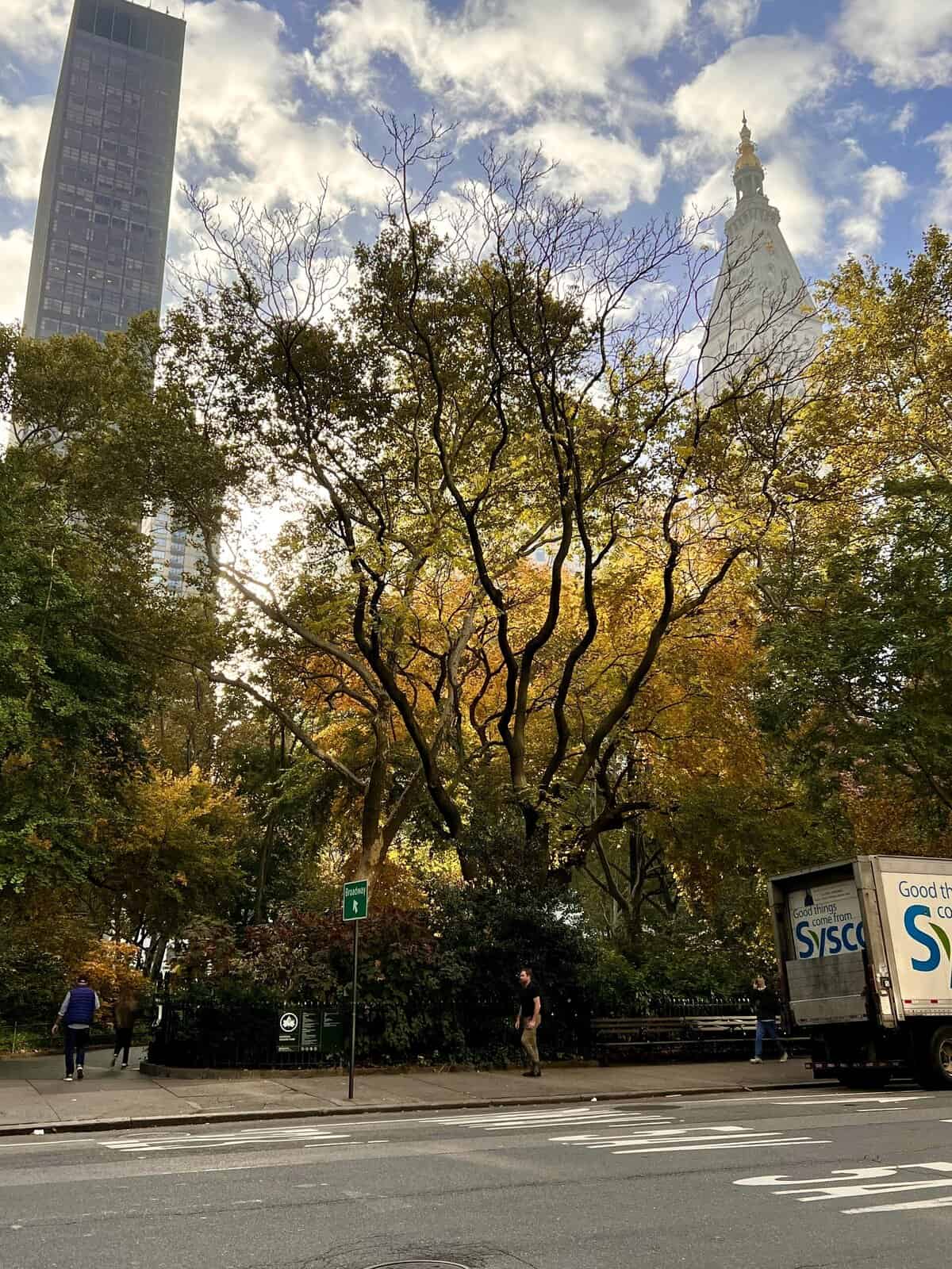 Yes, the holidays have arrived! Oddly the city was having crazy unseasonably warm weather. I think it hit 70 on Friday.ย It may not have felt like November, but it looked like it. The leaves were so pretty and in peak season! But the city was moving on and already decorating for Christmas! Theyโre ready.ย