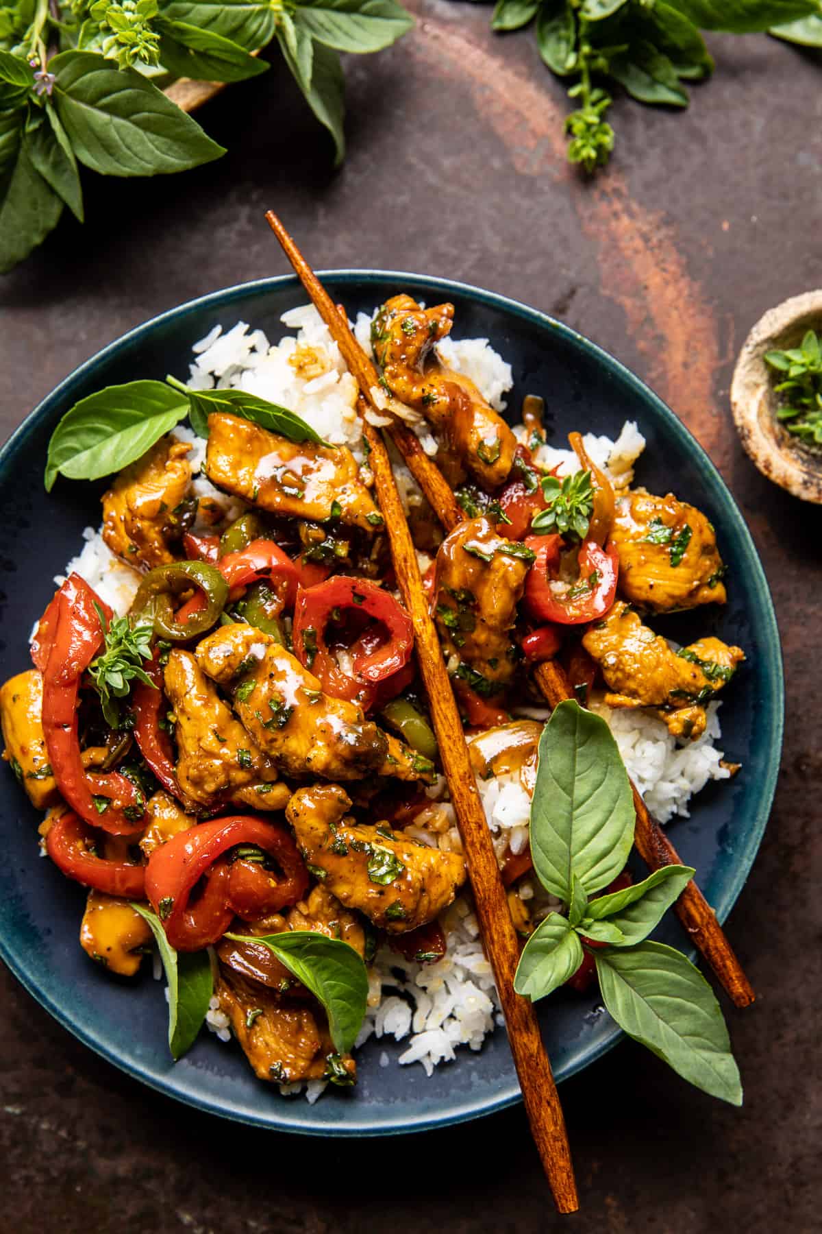 Wednesday:ย 25 Minute Black Pepper Jalapeรฑo Basil Chicken Stir Fry