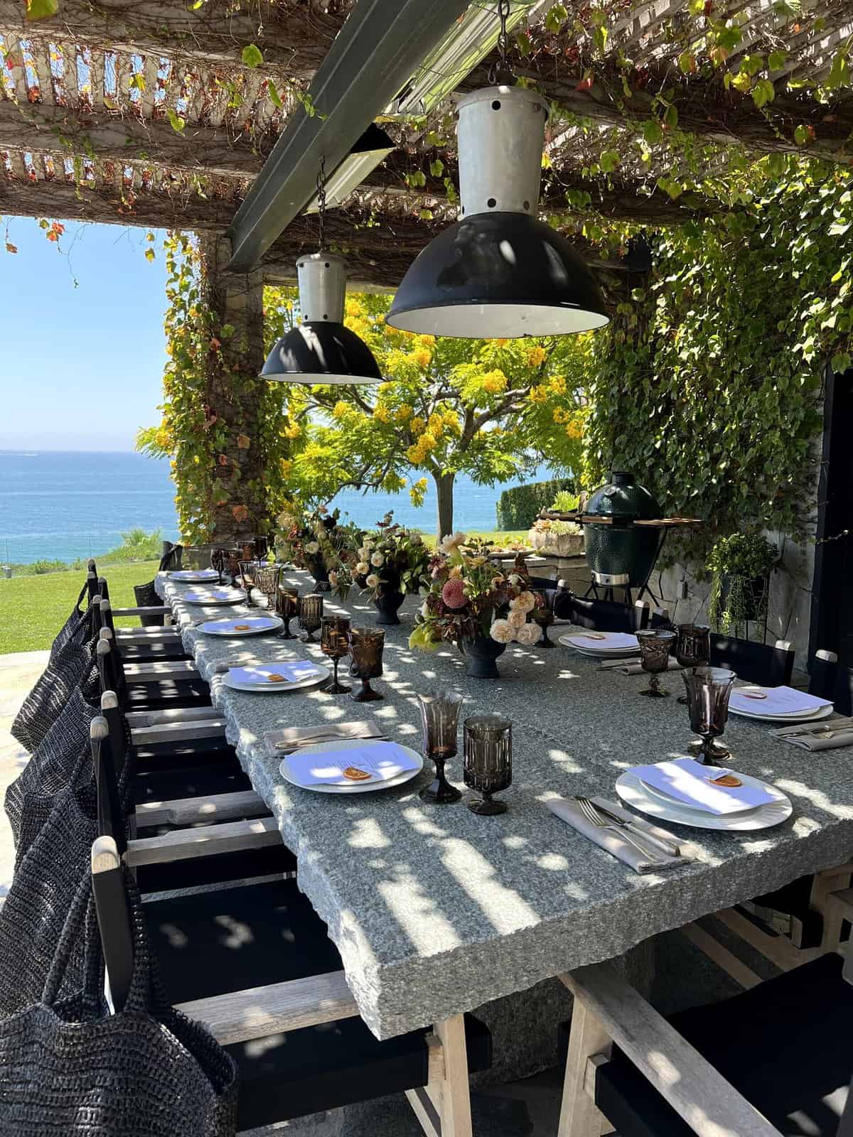 The lunch was held at her home and I really canโt express just how gorgeous it is. Do you see that stunning table, the florals, the view! I finally understand why people make an effort to live in Malibu. You canโt deny how pretty it is.