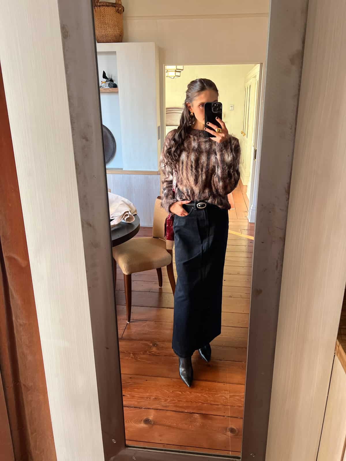 I love the outfit youโre wearing in the photo for ulta! Can you give details for the fur sweater, long skirt, shoes, accessories? Itโs the perfect cozy, chic ensemble!