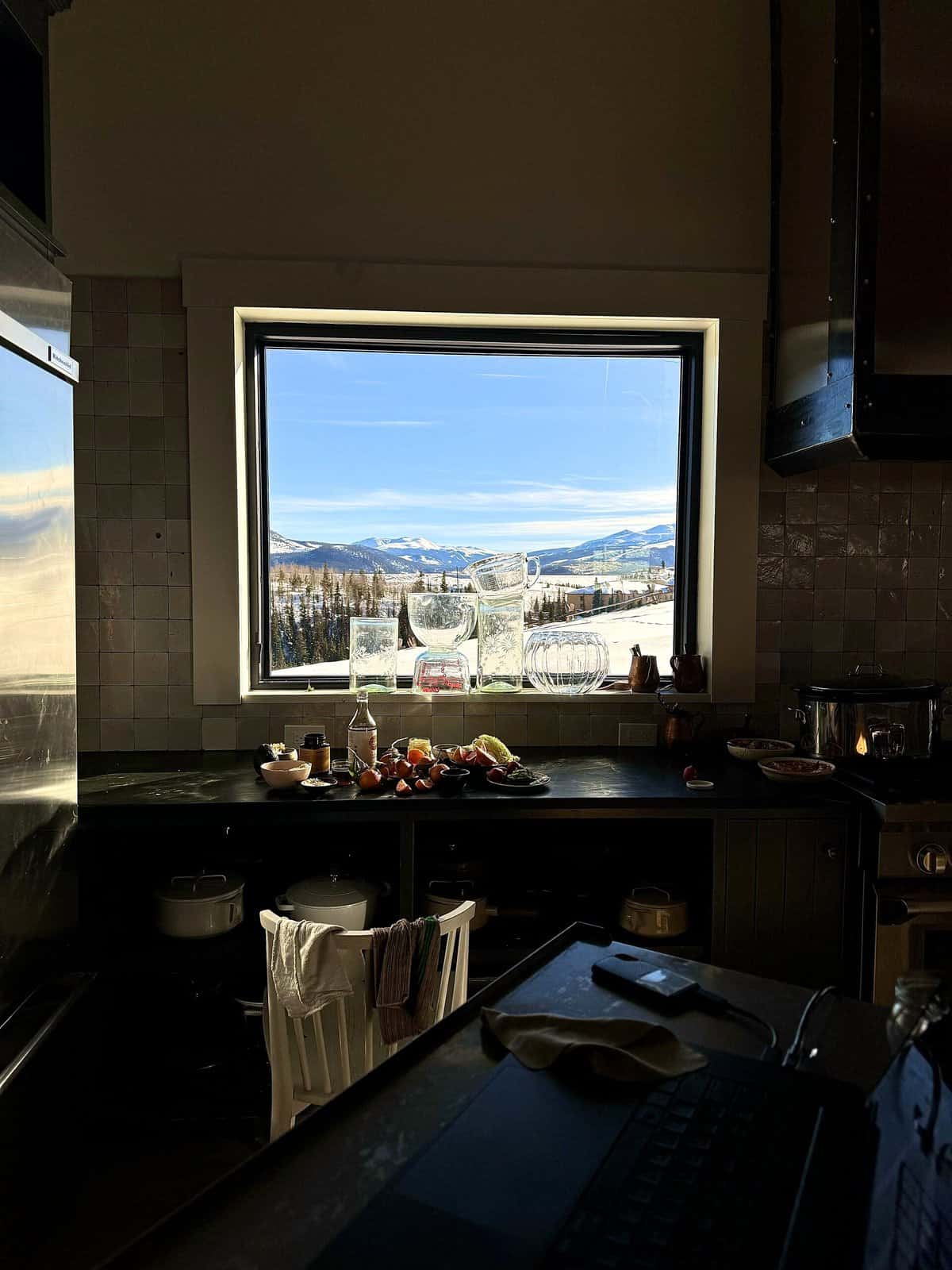 lovingโฆ. This is the coziest home. The photos are stunning, but the kitchen steals the show. I am obsessed with that island, itโs gorgeous. And the home as a whole is just so sweet, warm, and cozy โ a perfect winter escape to the mountains.