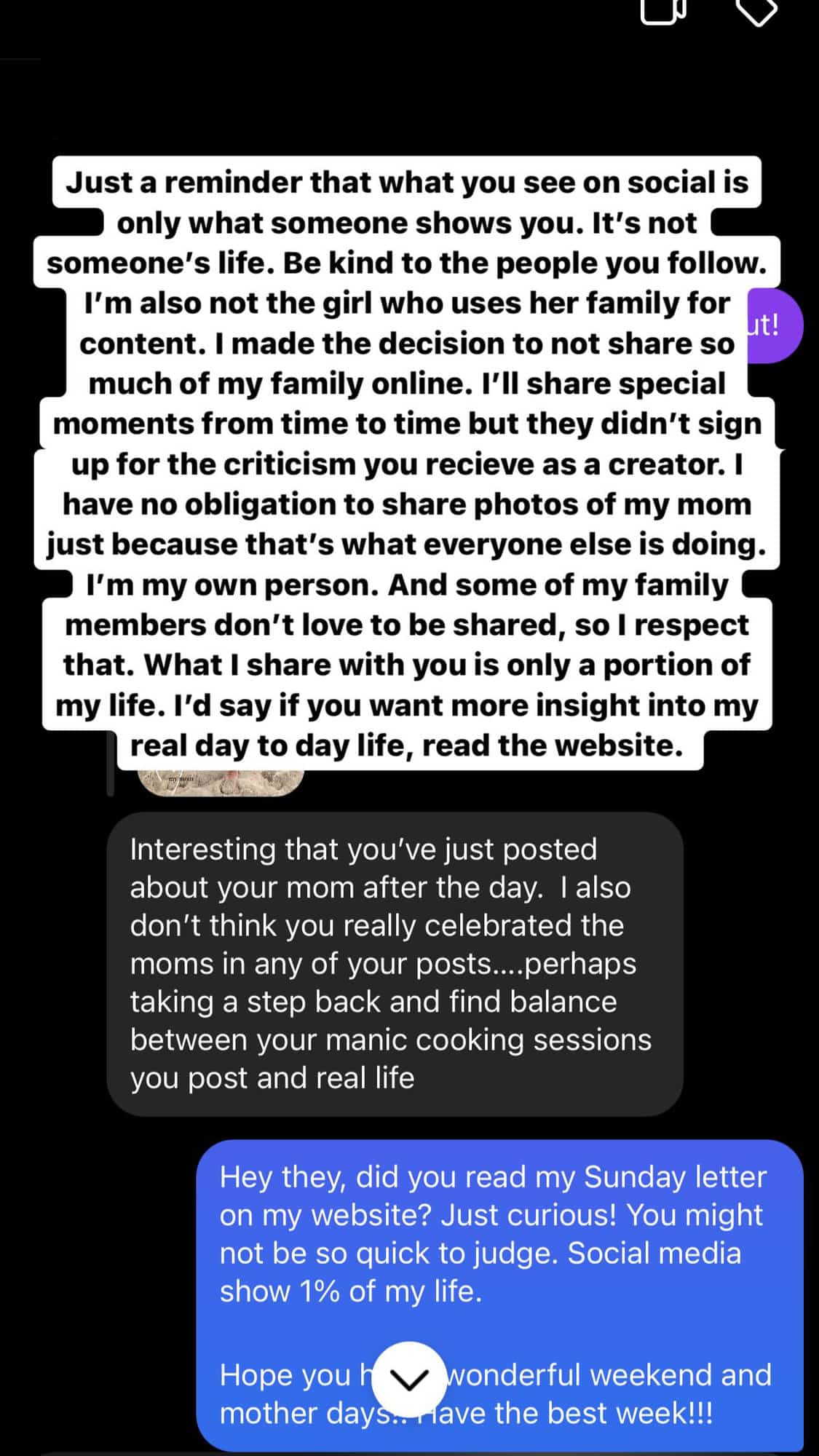 Why do you share pictures from other peopleโs vacations that you didnโt go on? Youโre using your familyโs experiences for content.