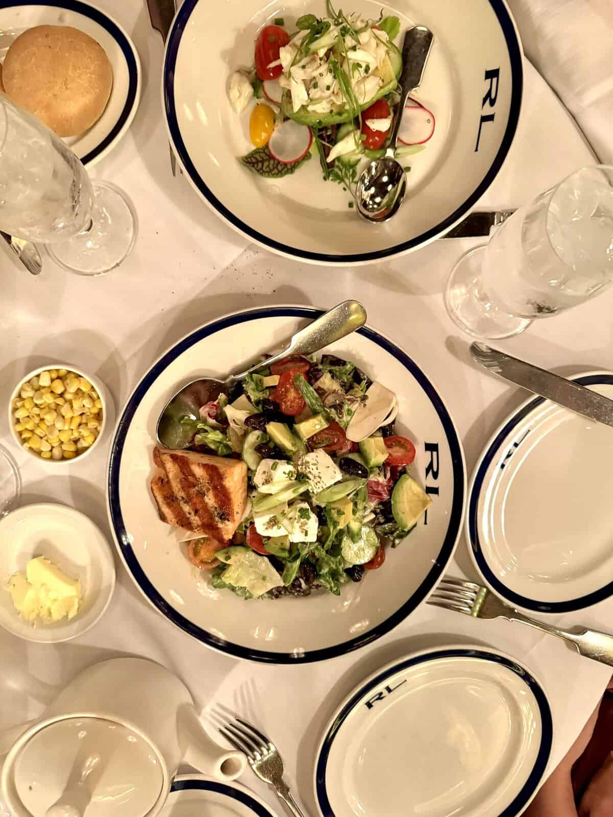 We had dinner at the Ralph Lauren restaurant in Chicago, which, of course, had a great vibe and was so good. We ordered multiple salads, salmon, and the filet mignon. And we inhaled the breadโso good! If you go, make sure you get dessert. Coconut cake is the favorite, but the brownie with hot fudge is not to be missed either.