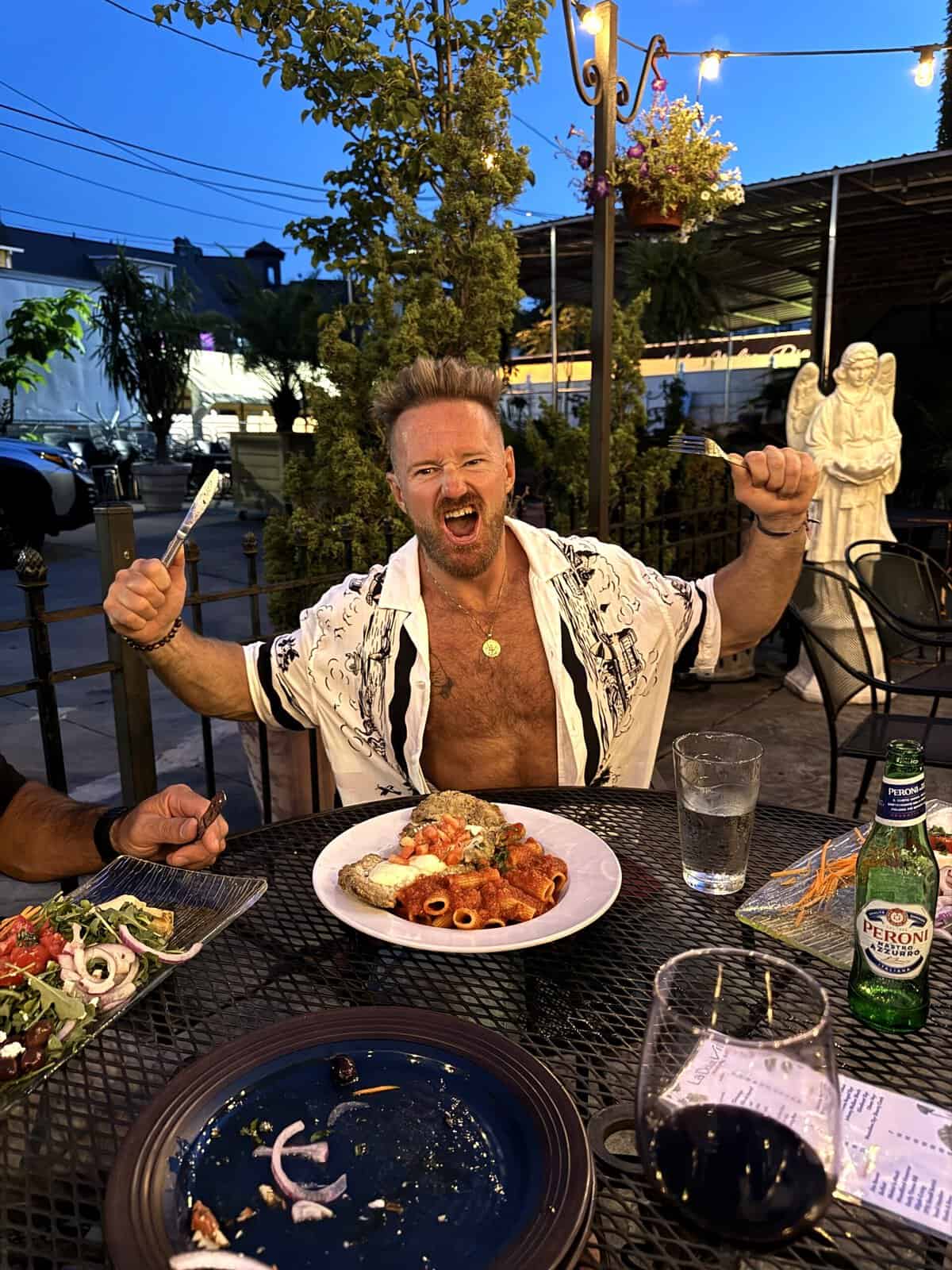 One of the nights, we all went to Little Italy in Cleveland with my uncle Matt. We sat outside at the cutest little restaurant called Dolce Vita. Food-wise, that was definitely the best meal of my trip. We ordered a lot: everything from stuffed peppers to pasta, meatballs, chicken parmesan, and even a whole pizza (this was Osloโs, but everyone ate it). It was all deliciousโlike DELICIOUS. Creighton was in his zone.