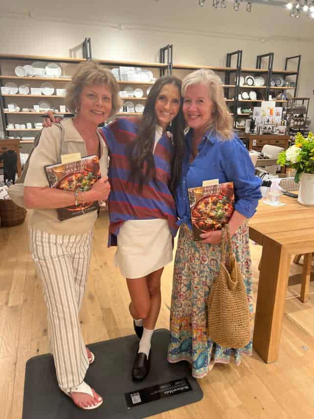 We kicked off the evening with a cooking demo and made the Cheesy Shallot Bread from Quick & Cozy. Since itโs summer, I added fresh cherry tomatoes for a seasonal twist! If youโre making it at home, you could easily top it with cherry tomatoes and basil, sweet corn and basil, or cilantro, zucchiniโso many delicious options. Everyone really seemed to love it!