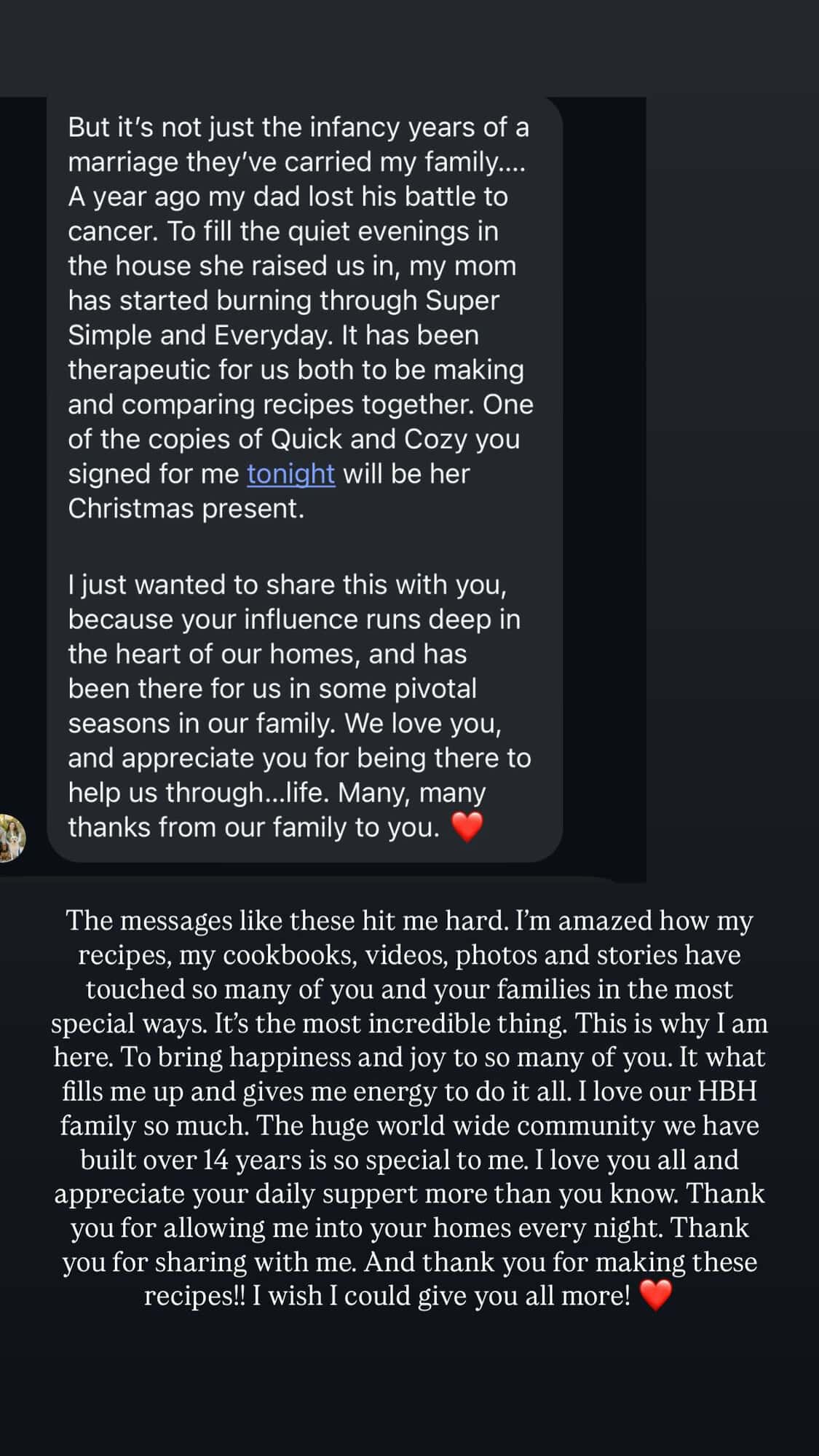 Love your messages from fans, itโs just lovely to think we are all separate member of your big cooking community. ๐