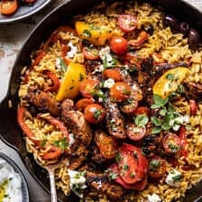 Lastly, if you make this One Skillet Greek Chicken and Orzo with Tomatoes, Feta, and Tzatziki, be sure to leave a comment and/or give this recipe a rating! Above all, I love to hear from you guys and always do my best to respond to each and every comment. And of course, if you do make this recipe, don’t forget to tag me on Instagram! Looking through the photos of recipes you all have made is my favorite!