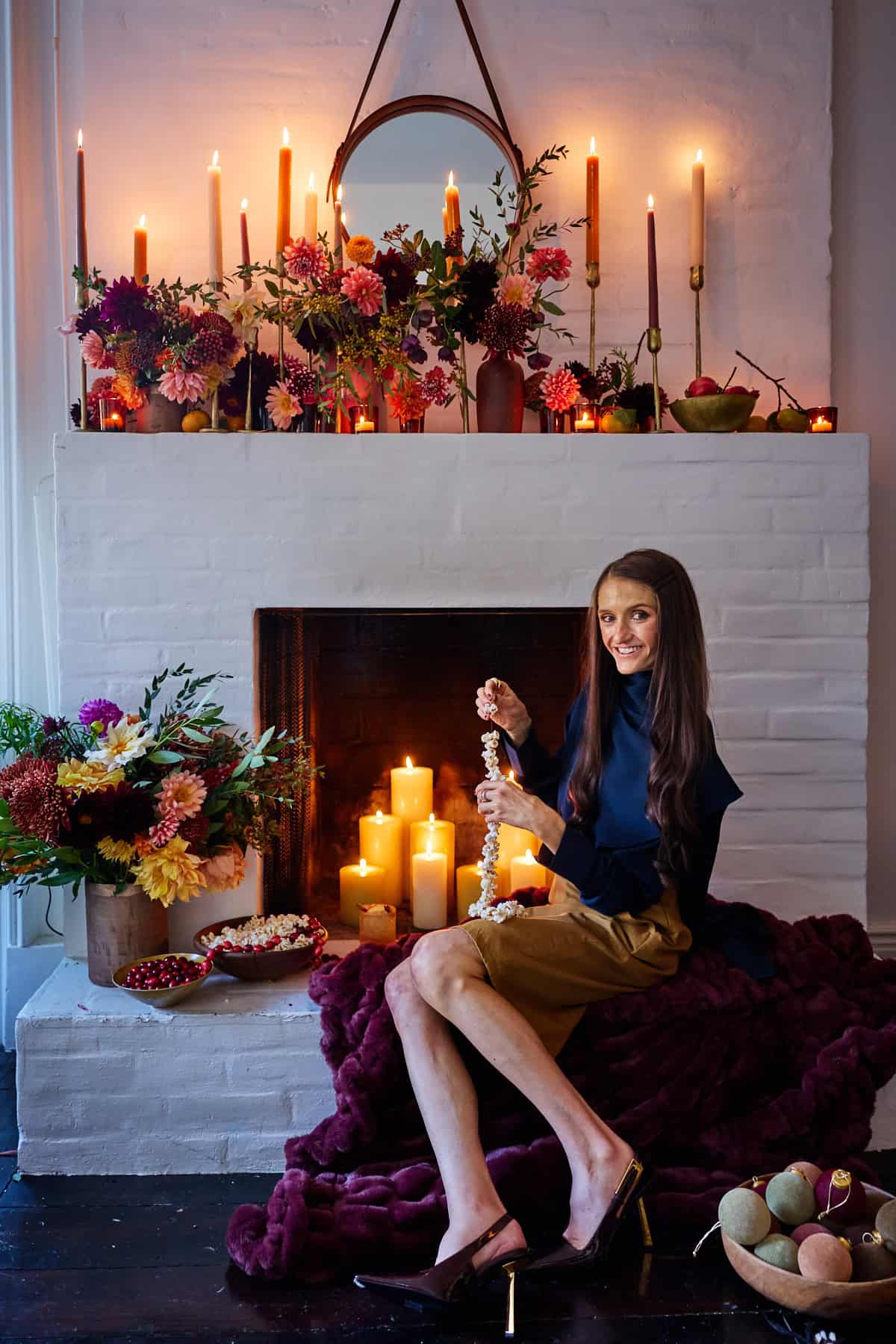 Every year we sit by the fir and string popcorn and cranberry garland strands for our family tree. Itโs the perfect way to end Thanksgiving night and one of my favorite traditions!