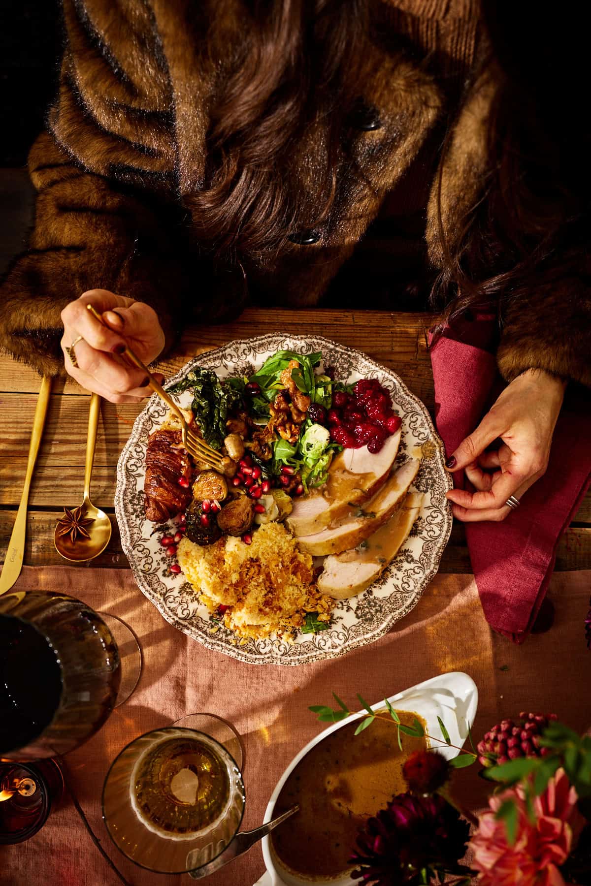 Everything looks so wonderfully Festive ๐ The only Detail I would alter is for you to pull your beautiful long hair back so strands are not winding up in the foodโ๏ธAnyone would make a scene pulling a hair out of their mouth at Dinner ๐