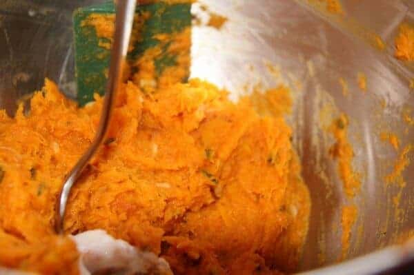For this dish, I first roasted the squash alongside some garlic and then mashed them together with some butter and sage. Sorry I am also addicted to sage lately as well!