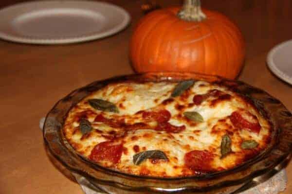 The sage leaves get all crispy and delicious in the oven and the dish comes out looking beautiful. This would be great to serve for a dinner party, it can feed a crowd and can easily be made vegetarian by eliminating the pepperoni.