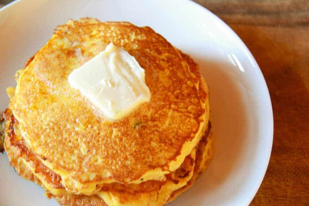 These flavor of these pancakes is awesome. Buttery, soft, and slightly chewy, they make the perfect lunch, side dish, snack, appetizer or even light dinner. They are definitely a savory pancake, but would really taste good any time! Seriously, if you do not have any leftover spaghetti squash it is worth making just so you can make these pancakes. They come together so quickly. Bonus, they are full of protein! But really and most importantly, they are so ridiculously goood!