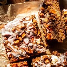 Kind of like an apple fritter โ but in cake formโฆthe ultimate fall treat; prepare to become obsessed!